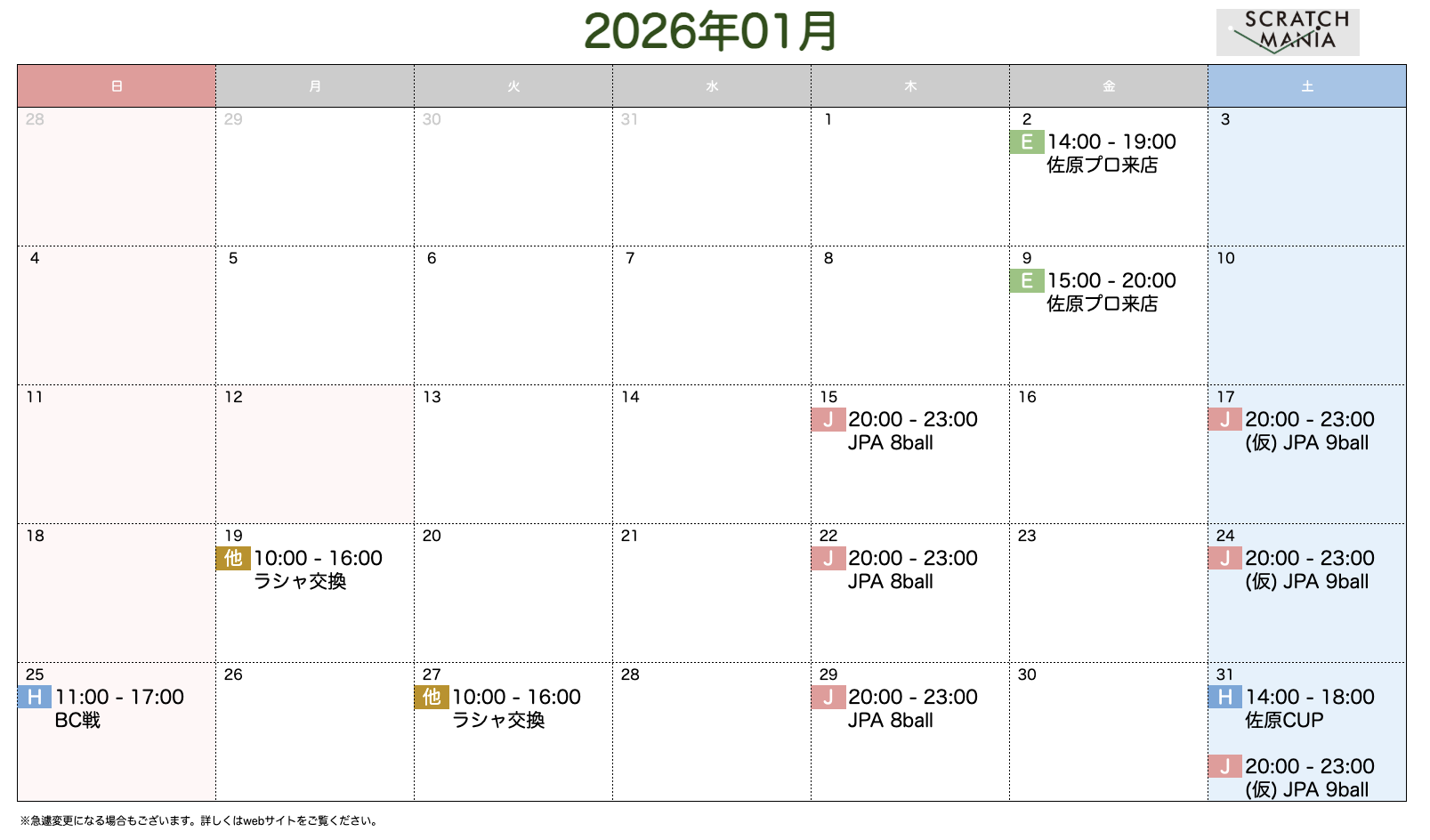 ※急遽変更になる場合もございます