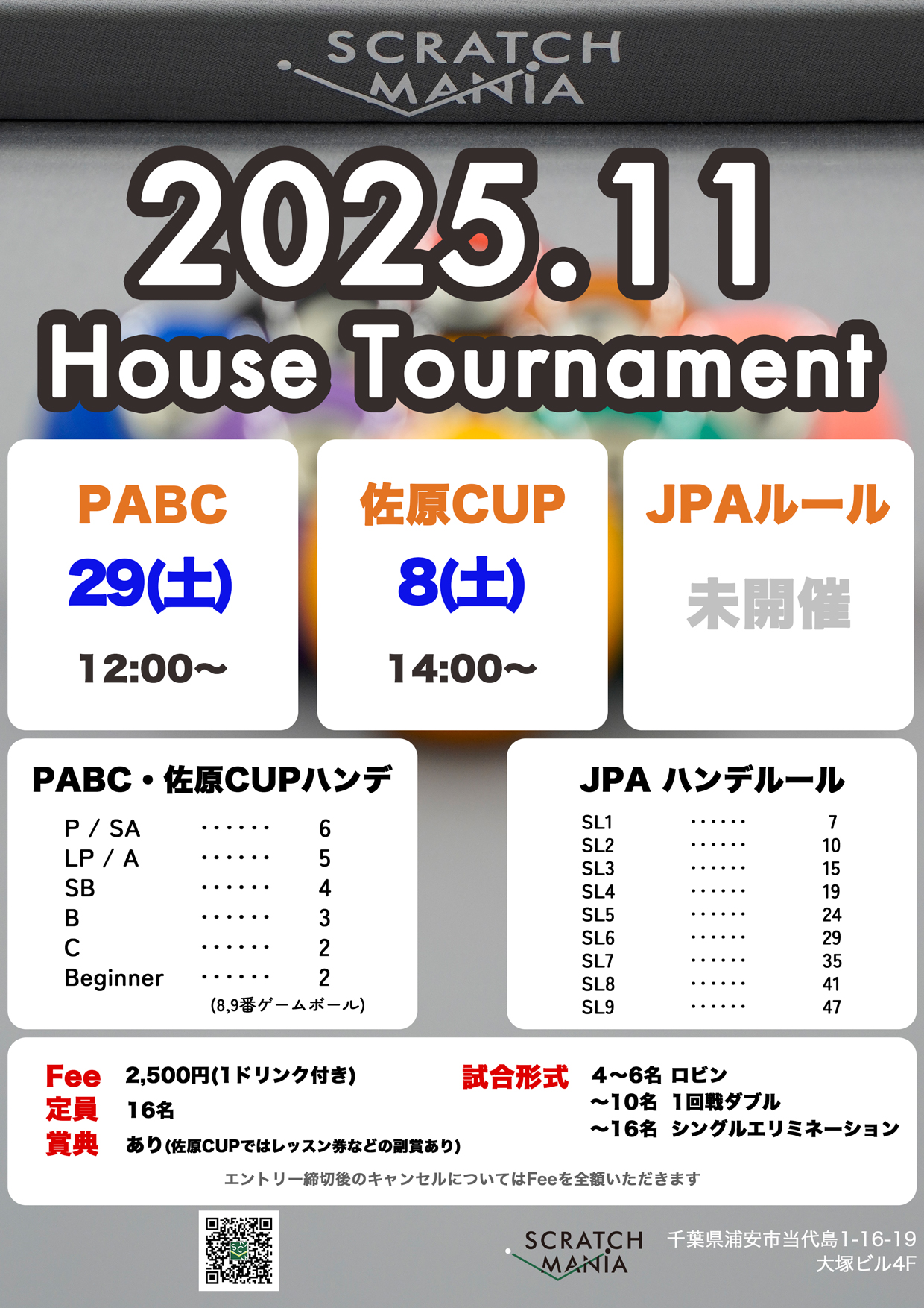 11月のハウストーナメントの日程が決まりましたのでご案内します!