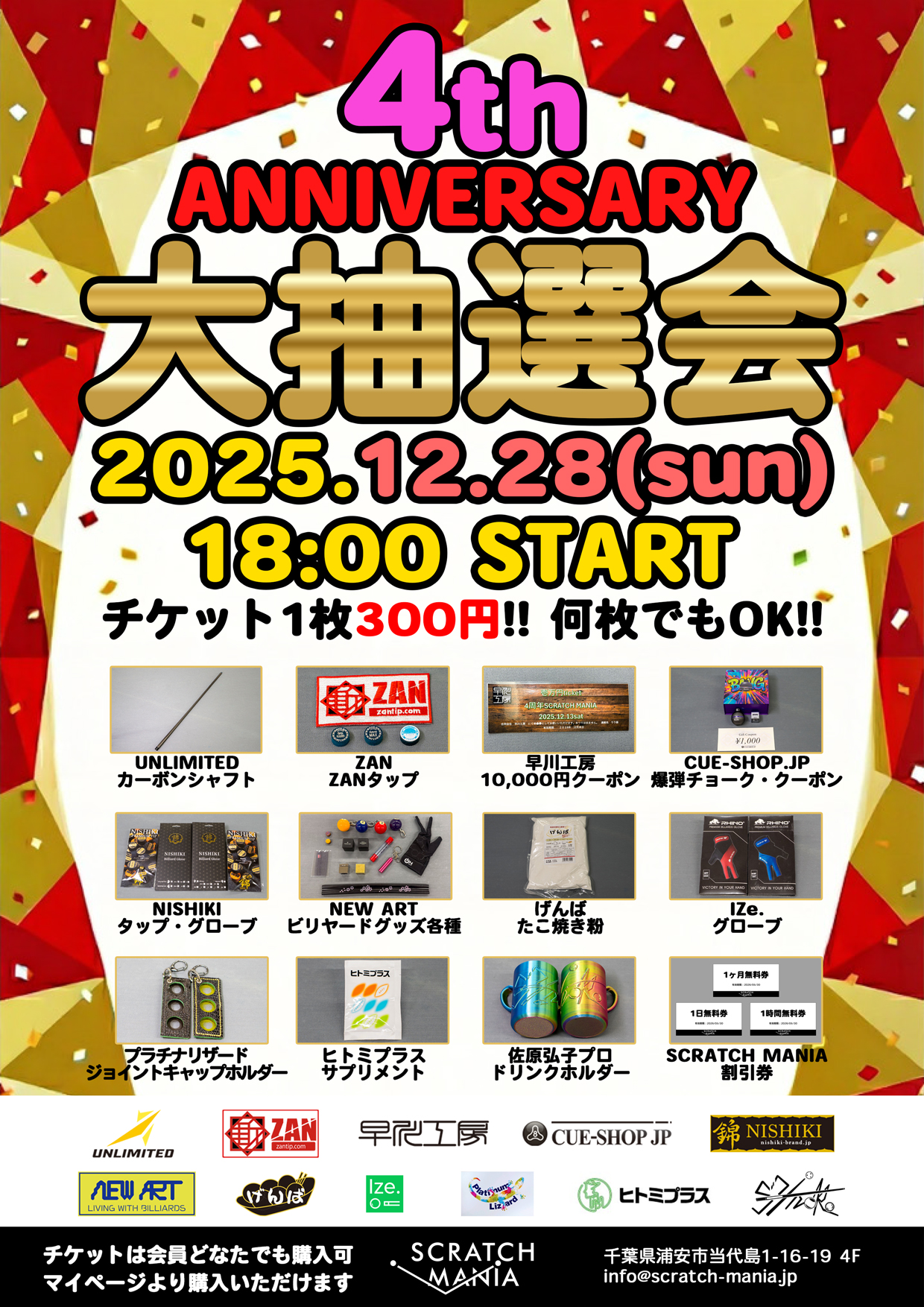 SCRATCH MANIA 4th ANNIVERSARY 大抽選会開催
