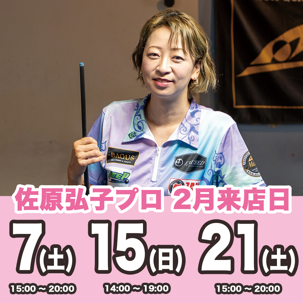 佐原弘子プロ2026年2月の来店日のご案内です。会員様はもちろんのこと、非会員のお客様もご利用可能となっておりますので、よかったら遊びに来てください!