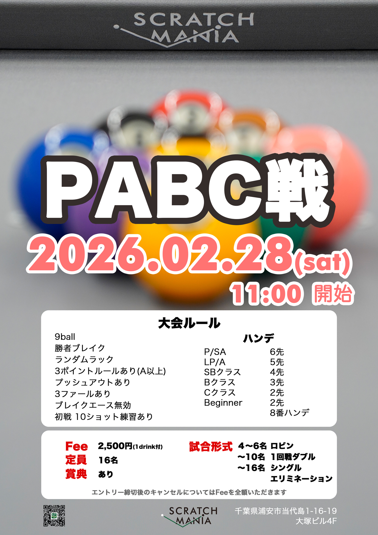 2/28(土)にPABCトーナメントを開催します!エントリーは